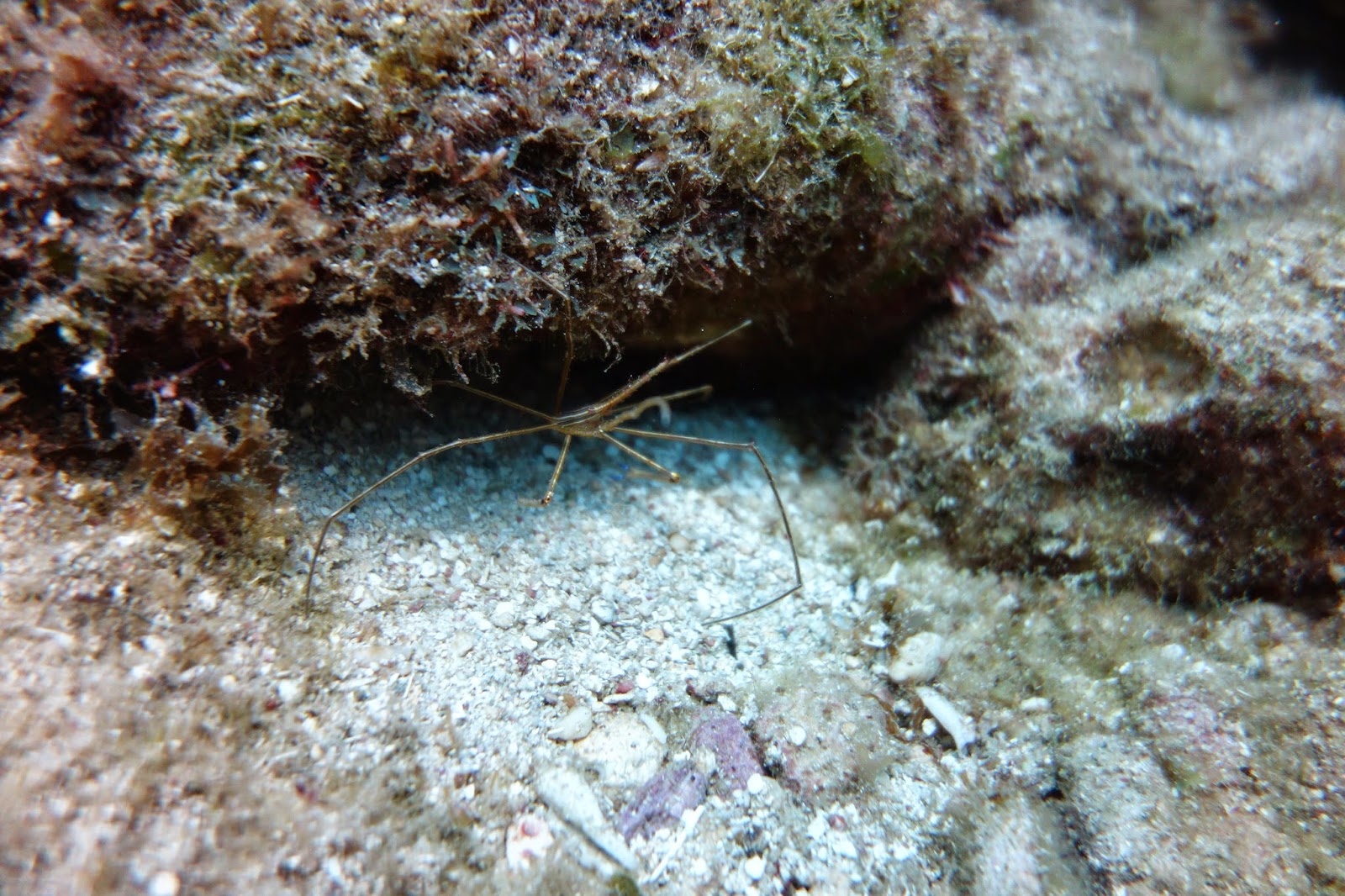 Diving here is similar to the West End but there are many more soft corals and sea fans here.  Our excellent divemaster, Davitt, is amazing at spotting all sorts of critters for us and he really puts on a show.  He is doing his part to protect Roatan's reefs from the invasive Lionfish which are not native to this part of the world and are outcompeting other marine life.  Davitt always brings a Hawaiian Sling (type of spear) with him on dives and any Lionfish he comes across get speared and either taken up to the boat for Davitt's dinner or fed to other marine life on the reef during the dive.  On one dive Davitt fed a lionfish to a black moray eel with white spots and on another dive he held the lionfish out in front of a toadfish (a type of ambush hunting fish).  In both cases, the moray, and the toadfish gobbled up the lionfish like a little treat!  It was really cool to watch.  Besides the bloodsport, Davitt was able to spot a few seahorses, tiny moray eels, shrimp, crabs, and even an eagle ray.  He is a great spotter!